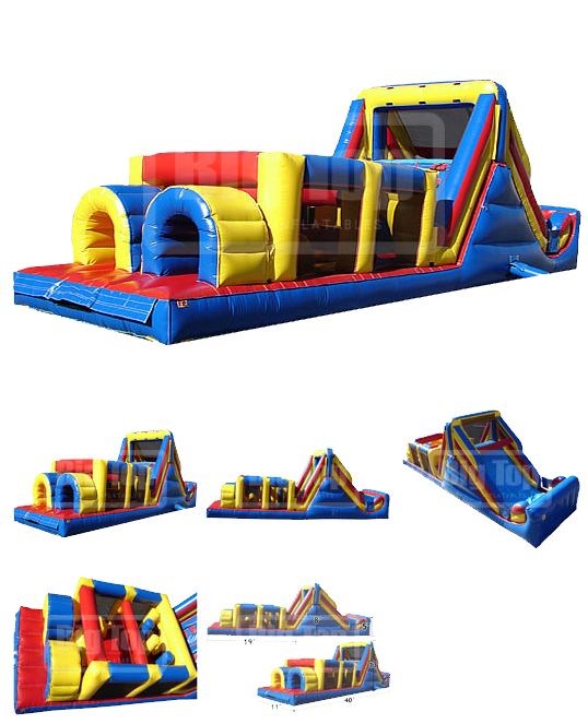 Khu Vực Trung Tâm (Leo và Đột phá): Bao gồm các cột phao chắn dọc hoặc các bức tường phao mềm (màu Đỏ, Vàng), đòi hỏi người chơi phải vượt qua hoặc né tránh bằng cách leo qua hoặc luồn lách.