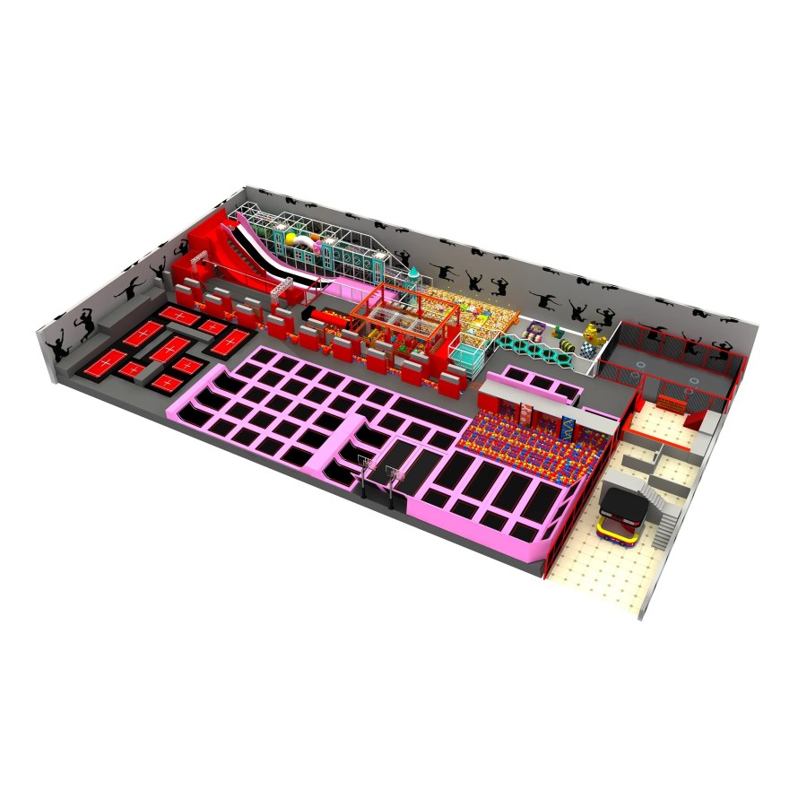 Khu vận động sàn nhún (Trampoline Mega Park) đại diện cho mô hình giải trí thể thao tiên tiến nhất, đáp ứng nhu cầu rèn luyện thể chất cường độ cao và giải trí mạo hiểm. Mô hình G143 được thiết kế để tối đa hóa không gian và chức năng, phù hợp với các khu vực thương mại rộng lớn như trung tâm thương mại hoặc các công viên giải trí trong nhà.